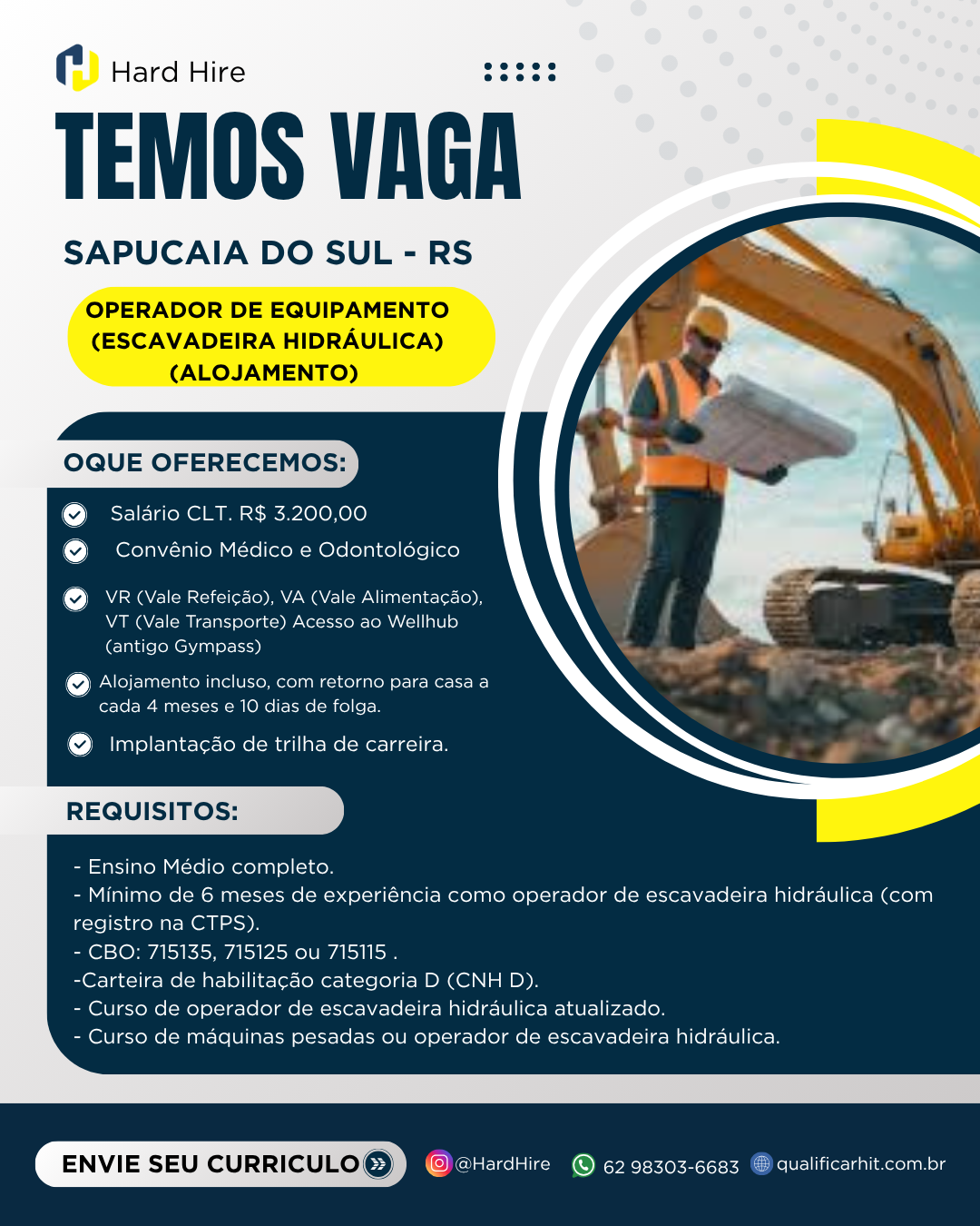 HARD HIRE Operadores de Máquinas Pesadas, Engenheiros, Técnicos de Segurança, Mecânicos Oportunidades Atualizadas SAPUCAIA DO SUL -RS COM ALOJAMENTO ACEITAMOS CANDIDATOS DE TODO BRASIL GUARULHOS-SP GUARULHOS -SP GUARULHOS-SP ARAÇARIGUAMA-SP IRACEMAPOLIS -SP PINDAMONHANGABA PINDAMONHANGABA – SP PIRACICABA-SP PIRACICABA-SP MINAS GERAIS DIVINOPOLIS -MG DIVINOPOLIS -MG DIVINOPOLIS -MG DIVINOPOLIS -MG ITAGUAI-RJ ITAGUAI-RJ ITAGUAI-RJ